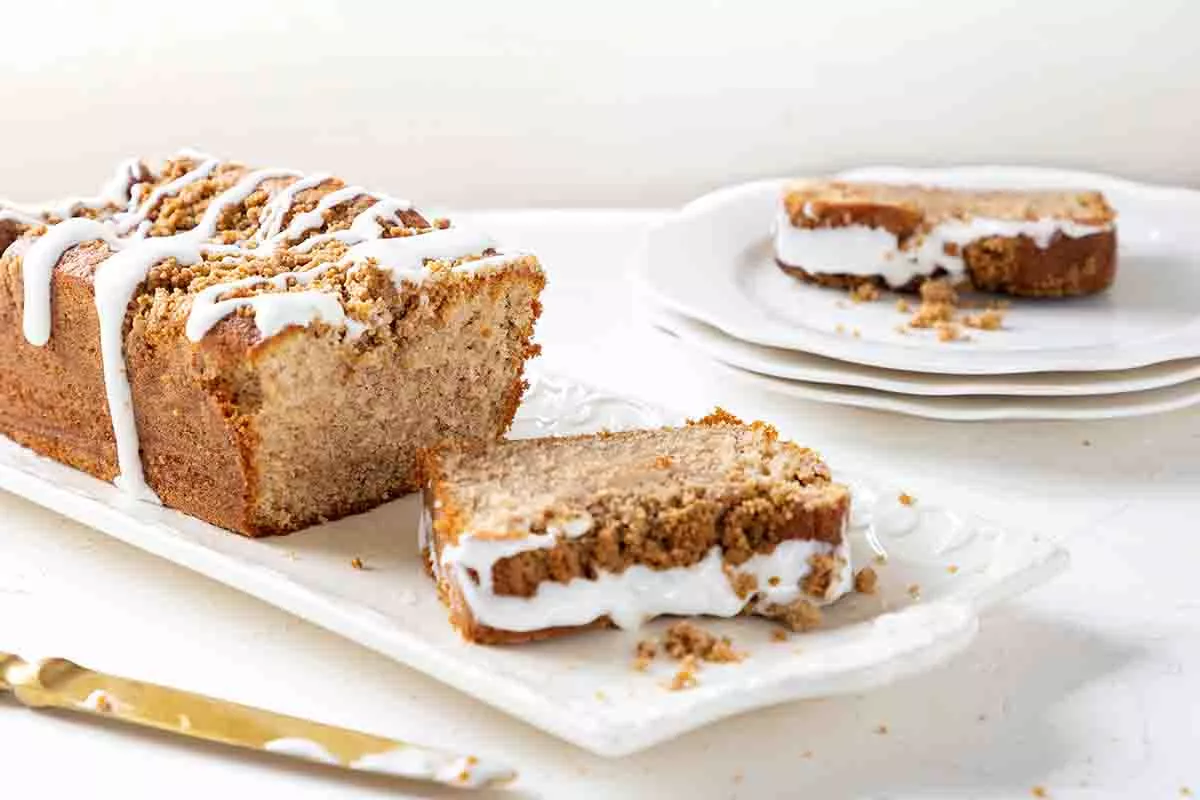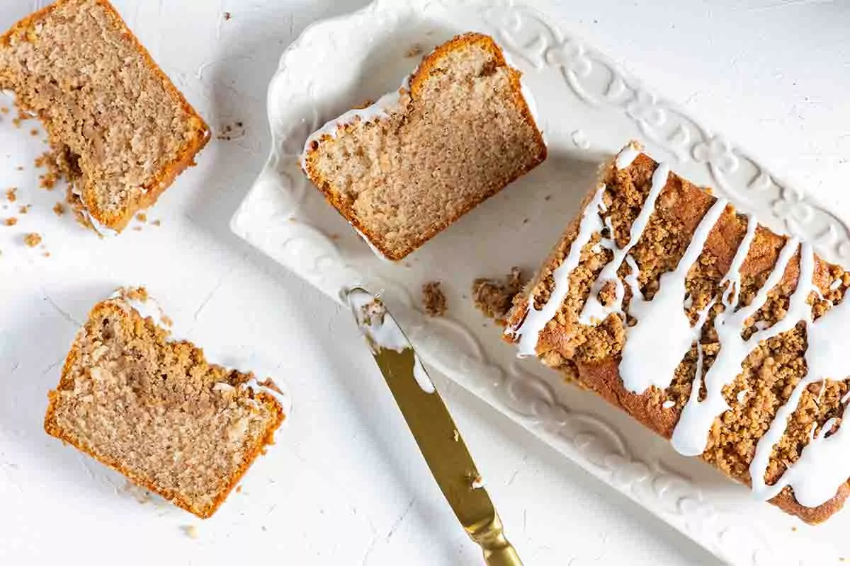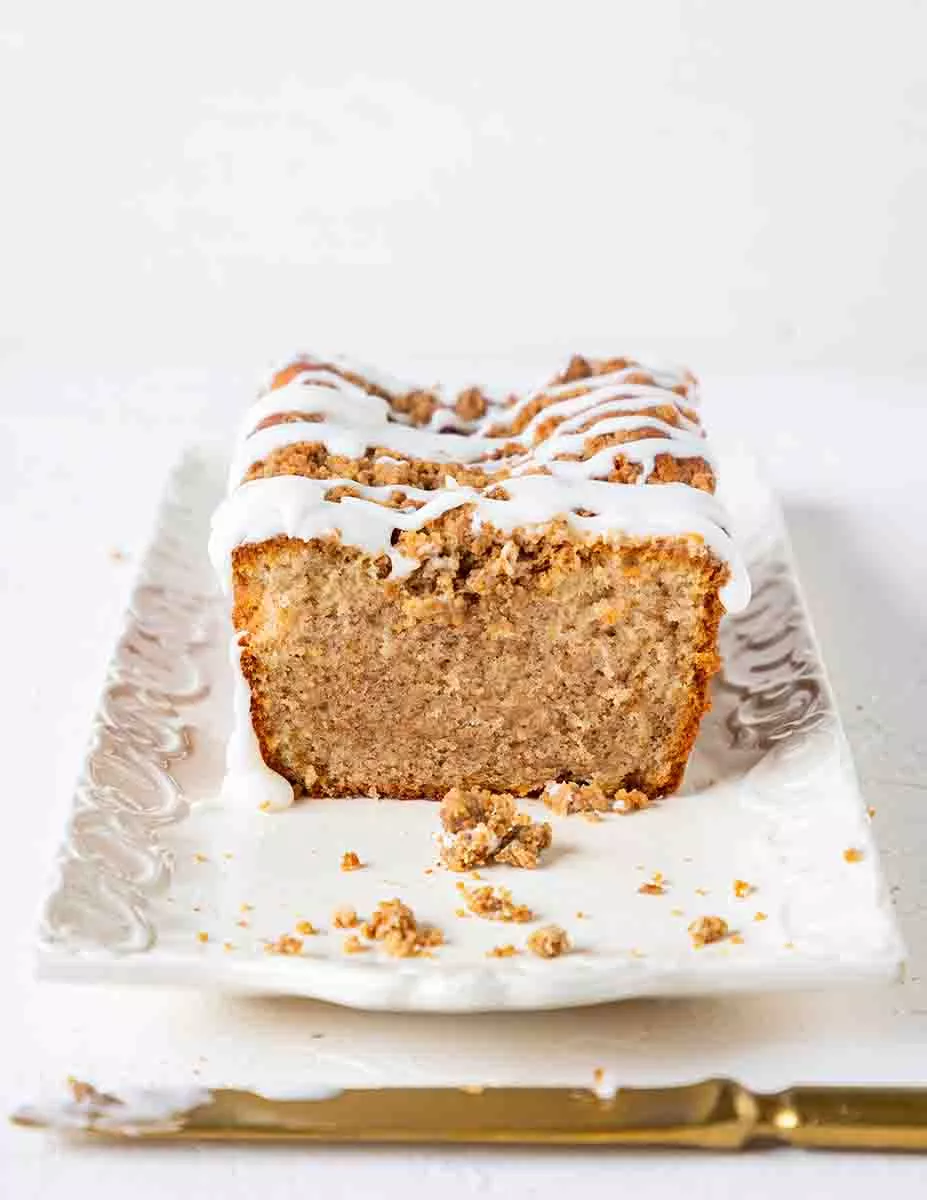 עוגה בחושה סופר רכה עם קרמבל קינמון שהחלק העליון שלו קראנצ'י והחלק התחתון שנוגע בבלילה של העוגה, רך ומרגיש במרקם שלו כמו בצק עוגיות וזה הכי טעים בעולם.