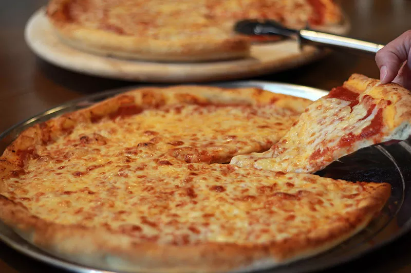 - להכניס לתנור החם לאפייה של כ-15 דקות או עד שהגבינות מבעבעות וטיפה משחימות והשוליים של הפיצה משחימות מעט.