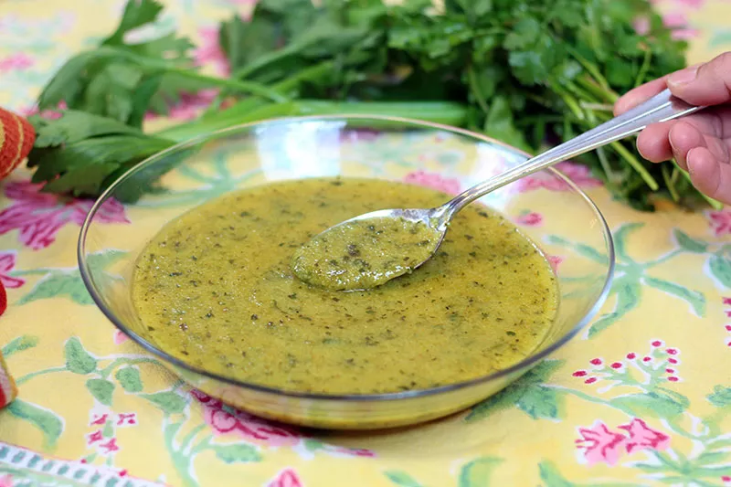 - בינתיים לקצוץ את הסלרי עם העלים במעבד מזון.