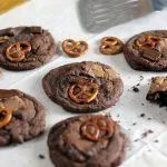 אז מה יש לנו פה- עוגיית שוקולד שבקצוות שלה קריספית ובאמצע רכה ונימוחה, משובצת בחתיכות של שוקולד מריר ושוקולד חלב שנמסים באפייה וחתיכות בייגלה מלוח. חגיגת טעמים של מתוק ומלוח.