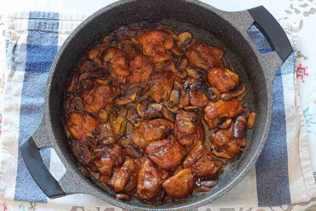 תבשיל של פרגיות שמתבשל ברוטב פטריות ובצל עם מתיקות של סילאן.