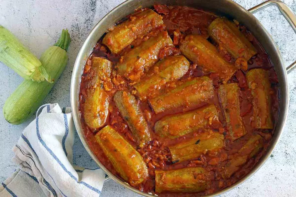 קישואים קטנים עם דופן דק דק, ממולאים במילוי אורז עסיסי ומבושלים ברוטב עגבניות אדום בוהק שאי שאפשר לעמוד בפניו.