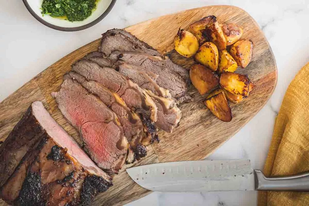 - להוציא מהתנור, להניח את הרוסטביף על קרש חיתוך ולתת לו לנוח כ-10-15 דקות לפני שחותכים.