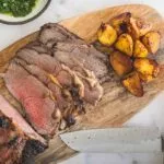 - להוציא מהתנור, להניח את הרוסטביף על קרש חיתוך ולתת לו לנוח כ-10-15 דקות לפני שחותכים.