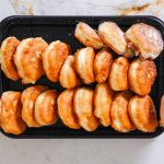 - עם ידיים רטובות לקחת חתיכות בצק, לשטח מעט ולהניח בעדינות בשמן החם. לטגן עד השחמה מצג אחד, להפוך ולטגן עד השחמה מצד שני. להוציא לרשת צינון.